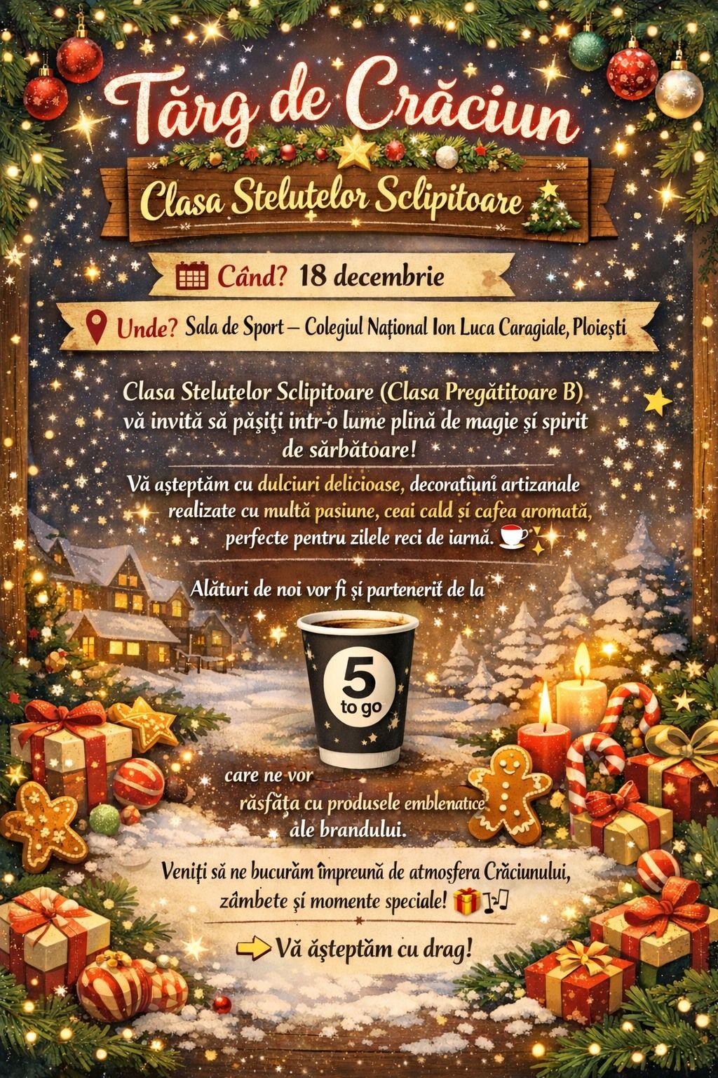 Colegiul Național „Ion Luca Caragiale” din Ploiești se pregătește să întâmpine sărbătorile de iarnă prin organizarea tradiționalului Târg de Crăciun, un eveniment devenit reper pentru comunitatea locală. Manifestarea va avea loc joi, 18 decembrie 2025, în curtea colegiului, între orele 09:00 și 16:00.